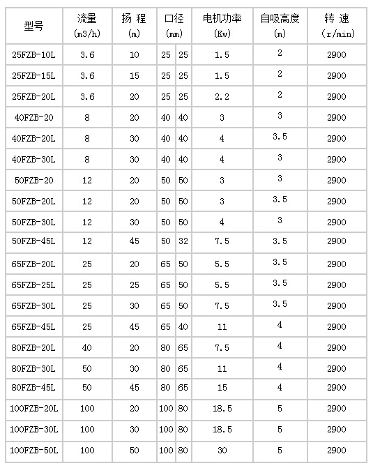 FZB型氟塑料自吸化工泵的過流部件全部采用氟塑料制造,且又具有自吸功能,因此, FZB型氟塑料自吸泵的用途極為廣泛,如:將地下槽中的腐蝕性液體抽送至目標(biāo)地點(diǎn),將底端無出口的酸堿槽中的酸堿抽送到目標(biāo)地點(diǎn),或用于多個酸槽之間的循環(huán),或用于卸酸等等。