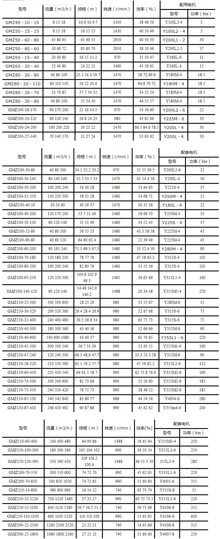 GMZ型渣漿泵性能范圍: