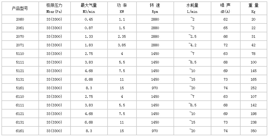 2BV型水環(huán)式真空泵的主要技術(shù)數(shù)據(jù):